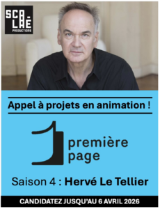La 4ème édition du concours Première Page, organisé par Scalaé Productions en association avec France Télévisions, vient d’être lancée. Les futurs diplômés d’écoles d’animation ont jusqu’au 6 avril pour envoyer leur dossier. Pour la 1ère fois, la collection est dédiée à un auteur contemporain : Hervé Le Tellier, prix Goncourt 2020.